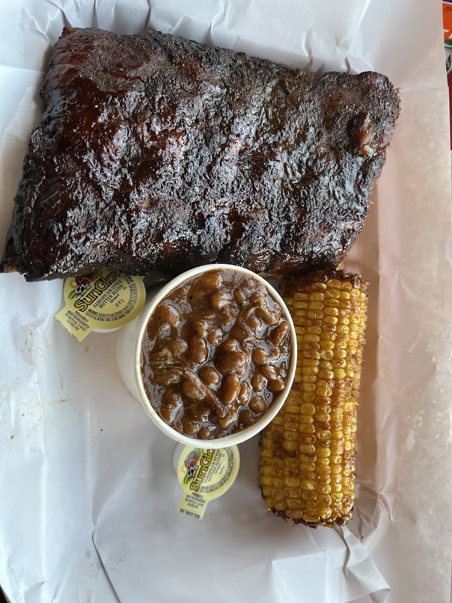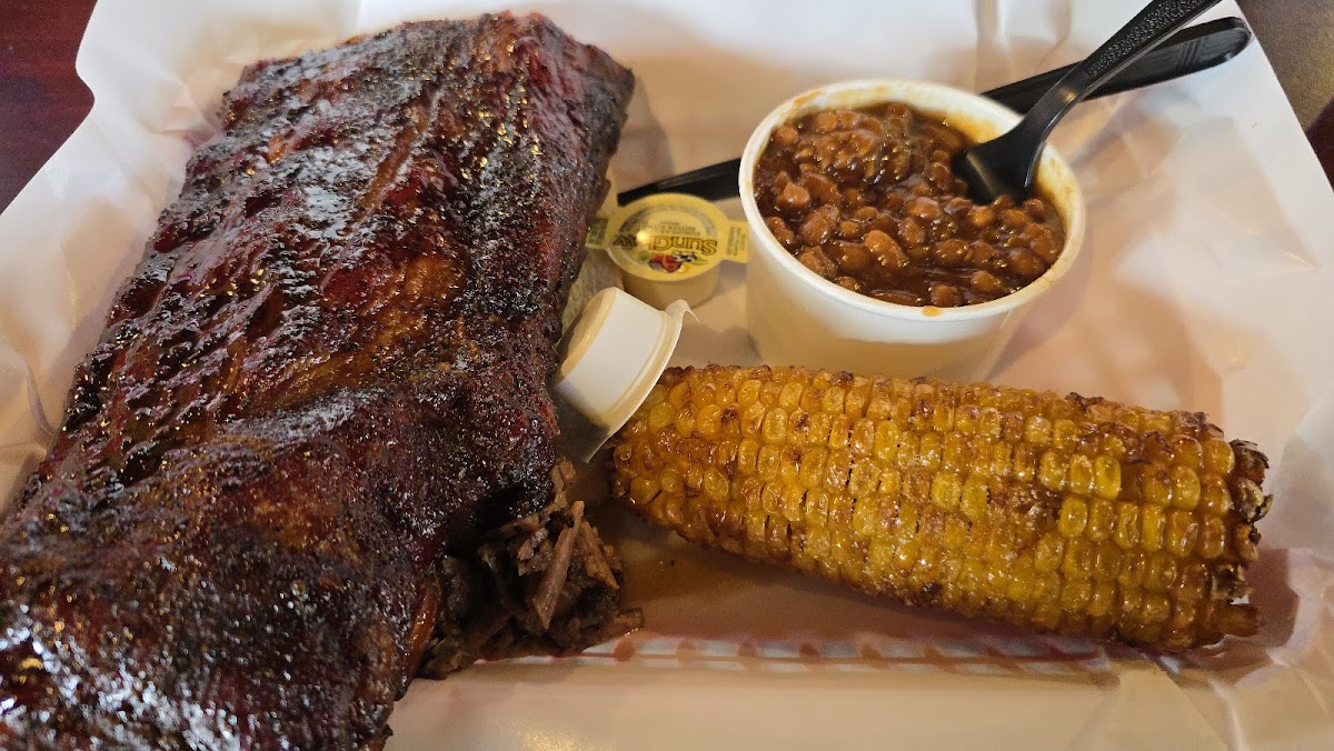 Good BBQ. I am happy we chose to go, we were impressed. We had ribs, fried corn and fire and ice pickles. The ribs were great. Cooked well, good ring and they tasted good. The corn was ok, they have other sides to pick. but my favorite thing we ate were ther fire and ice pickles!!Addicting!!!